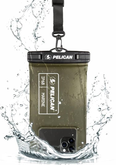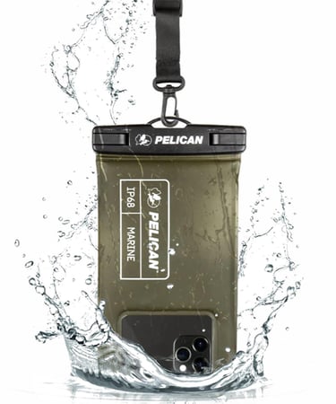 Pelican Marine IP68 Floating Waterproof Phone Pouch | Touchscreen Compatible with Crossbody Lanyard (XL Size) - Olive Green