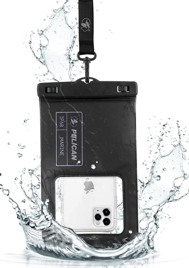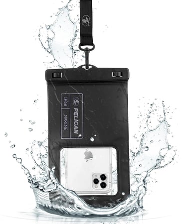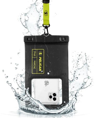 Pelican Marine IP68 Floating Waterproof Phone Pouch | Touchscreen Compatible with Crossbody Lanyard (XL Size) - Black